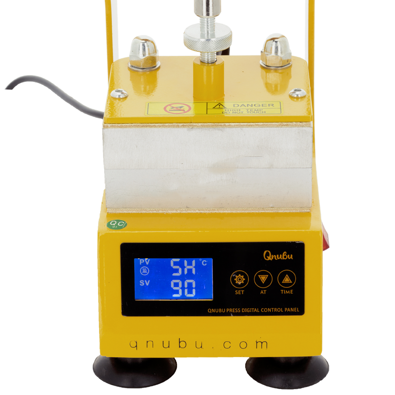 Simply select temperature and heat up the press, place your flower or plant between two sheets of parchment paper or use a Qnubu Extraction Paper (sold separately) then apply pressure using the press system. The heat and force of the press creates a natural botanical extraction without the need for toxic solvents or any purging. After allowing to cool, gently unfold the extraction paper to reveal your natural essential oil rosin.