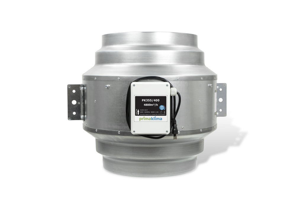 The Prima Klima BLUE LINE PK355/400 is equipped with highly efficient German ZIEHL-ABEGG motor with incredible Airflow of 4800m³/h. BLUE LINE ventilator is built for continuous non-stop operation (more then 80.000 hours at full speed). Fan can operate at low levels of noise (72dB) and surpasses by far the ERP2015 Energy Efficiency Directive. Power and control systems are located in a high quality junction box fully assembled with a Schuko power cable. Pre-installed, robust mounitng brackets allow a perfect positioning in the room.