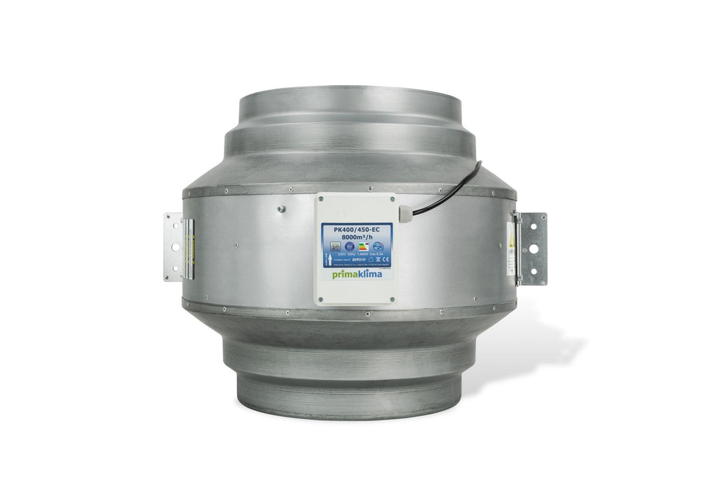 The Prima Klima BLUE LINE PK400/450-EC is equipped with highly efficient German ZIEHL-ABEGG motor with incredible Airflow of 8000m³/h. BLUE LINE ventilator is built for continuous non-stop operation (more then 80.000 hours at full speed). Fan can operate at low levels of noise and surpasses by far the ERP2015 Energy Efficiency Directive. Power and control systems are located in a high quality junction box fully assembled with a Schuko power cable. Pre-installed, robust mounitng brackets allow a perfect positioning in the room.