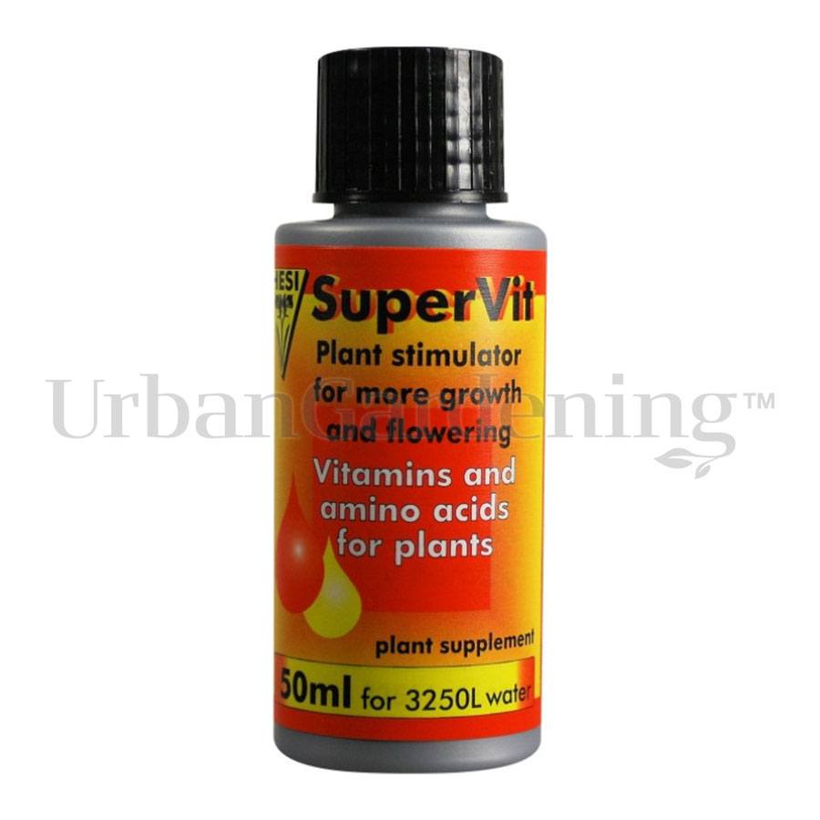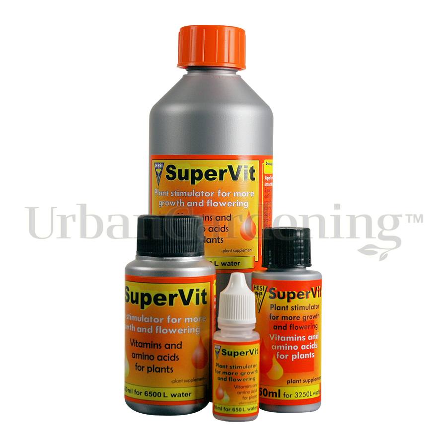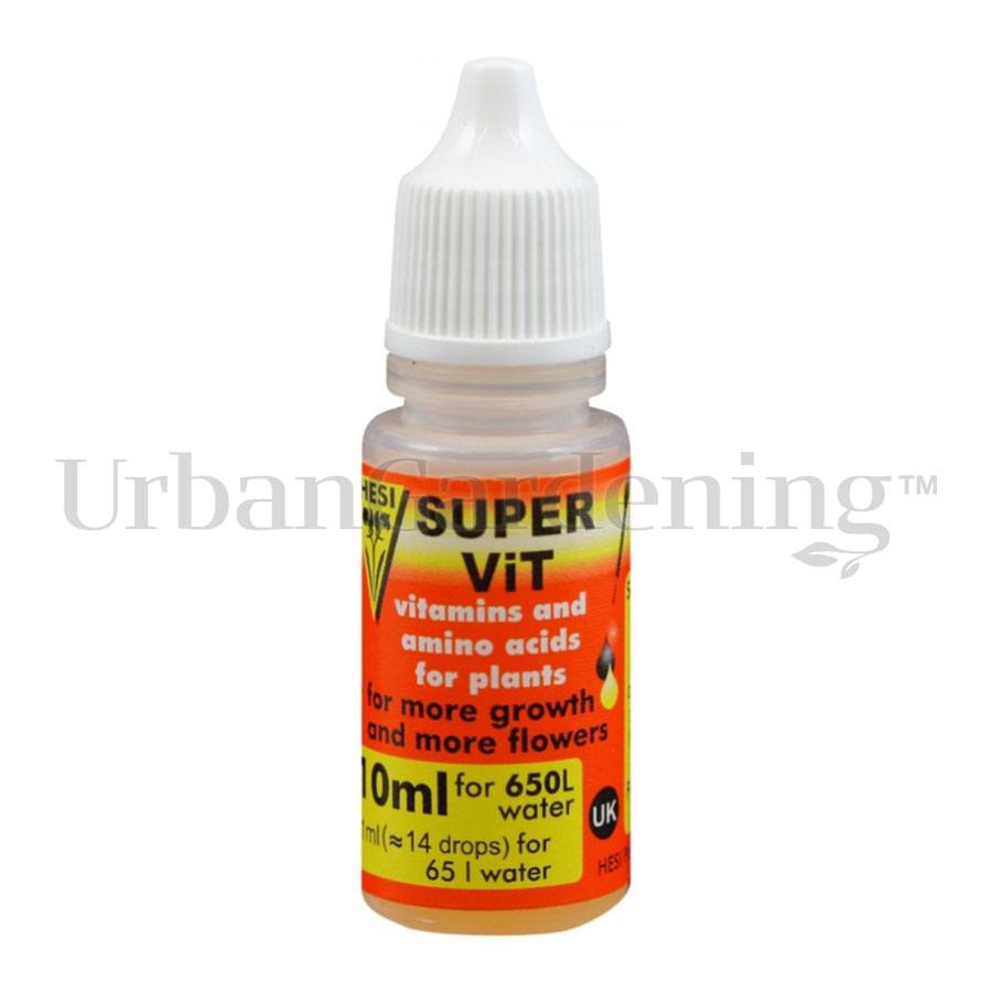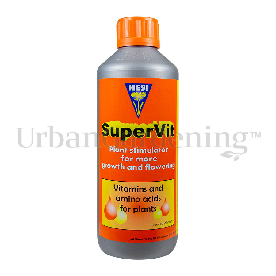 HESI SuperVit is a highly concentrated plant stimulator comprised of 15 plant-active vitamins and 10 amino acids. Vitamins and amino acids are both building blocks and biocatalysts in general metabolism. They structure the DNA (the genetic material) and plant hormones (cytokinins and gibberellins) which control the growth of leaves and flowering of plants. The vitamins and amino acids also play an active role in photosynthesis and the supply of energy.