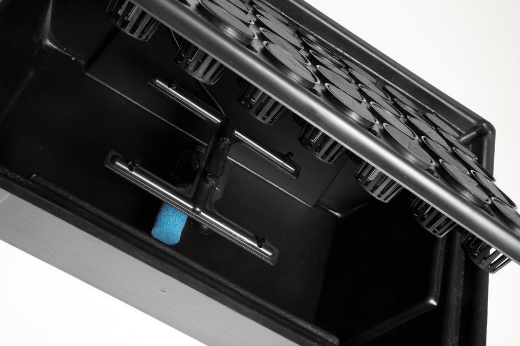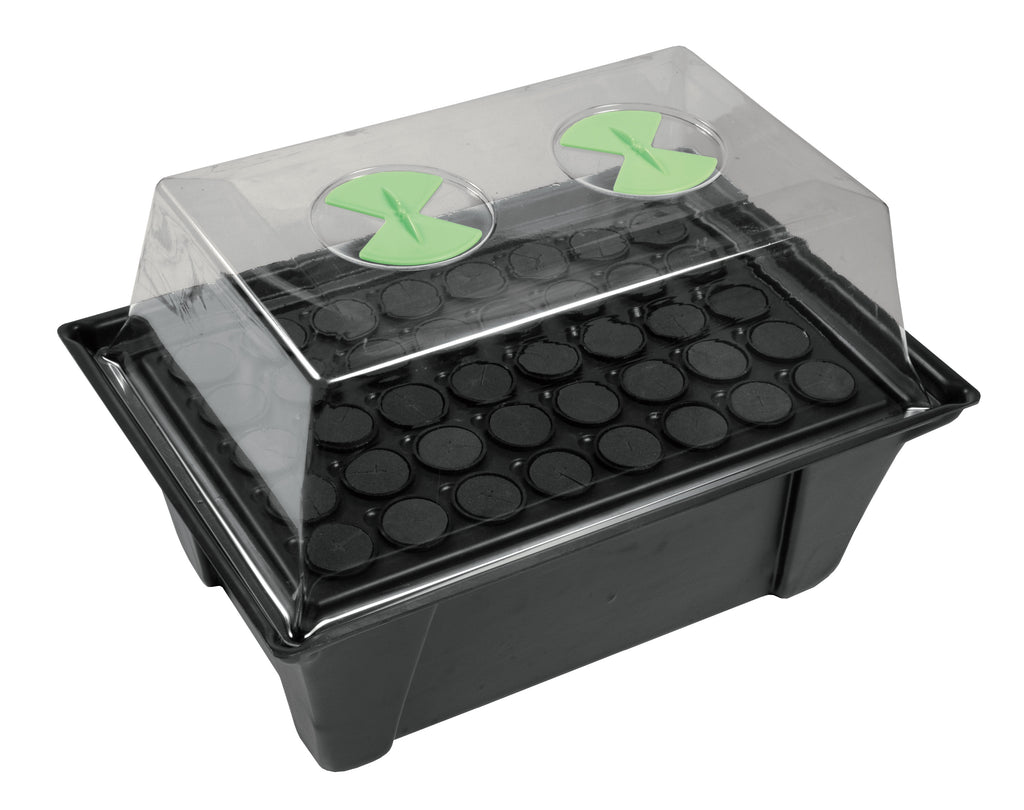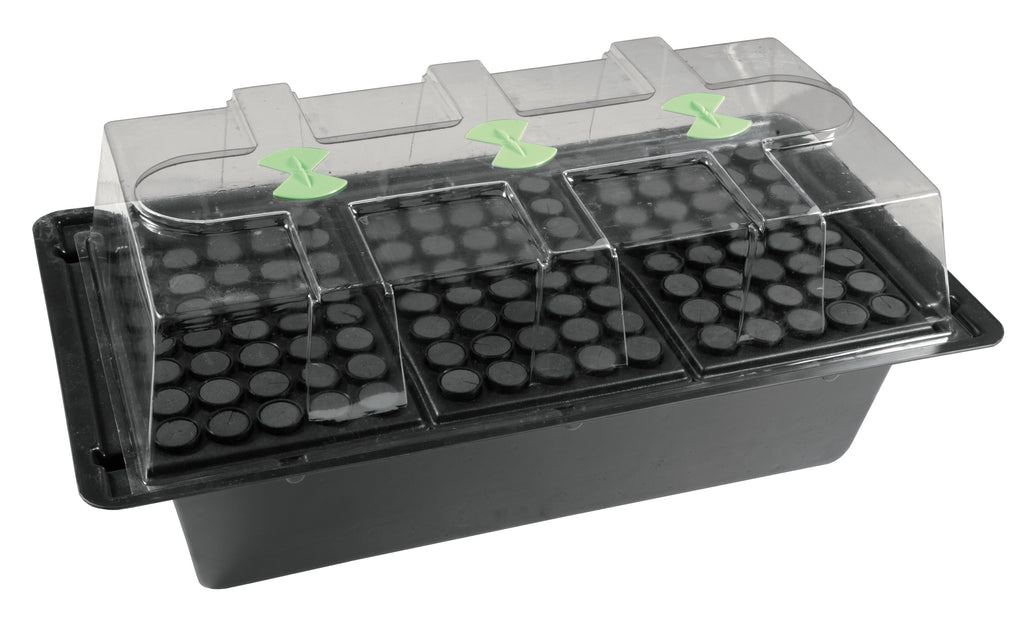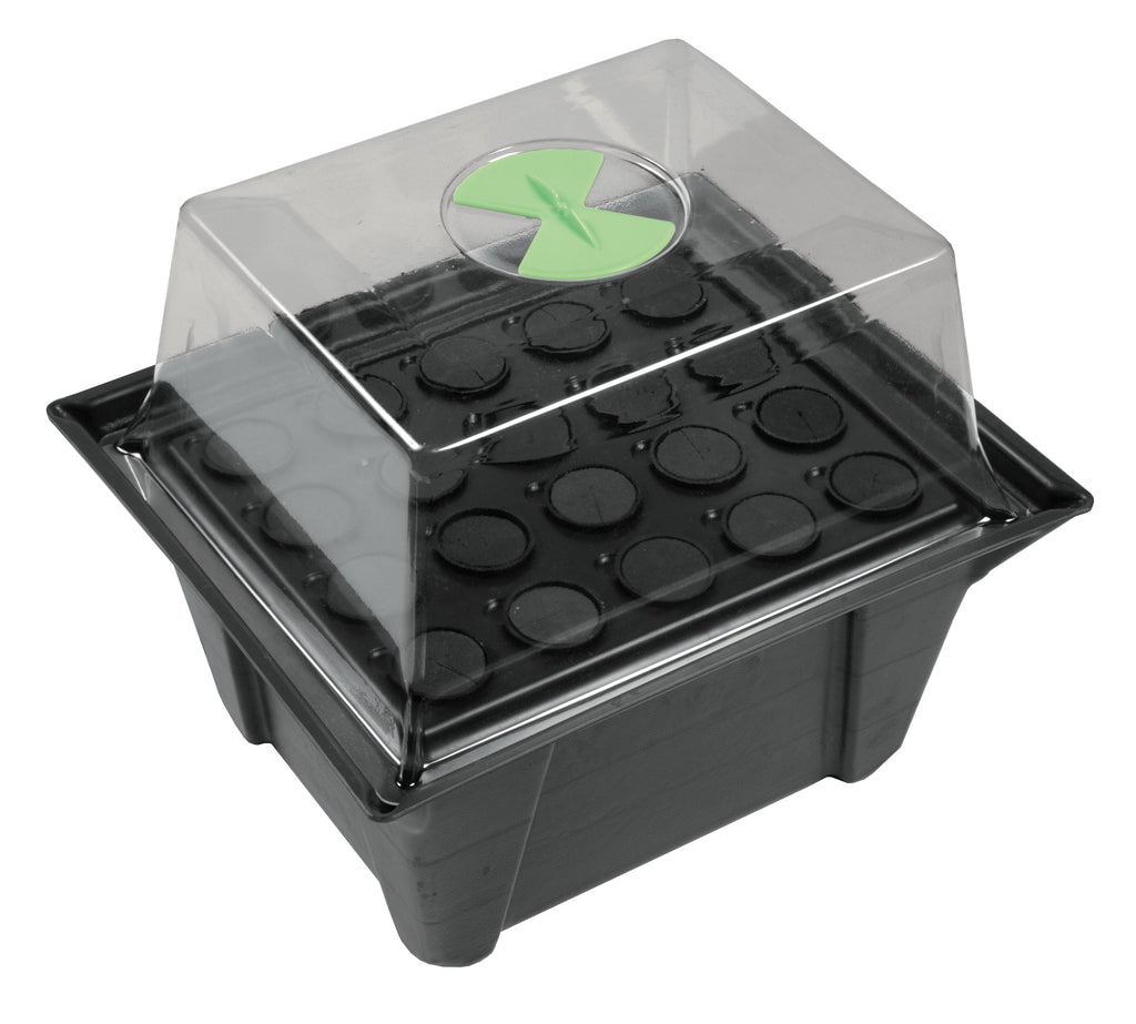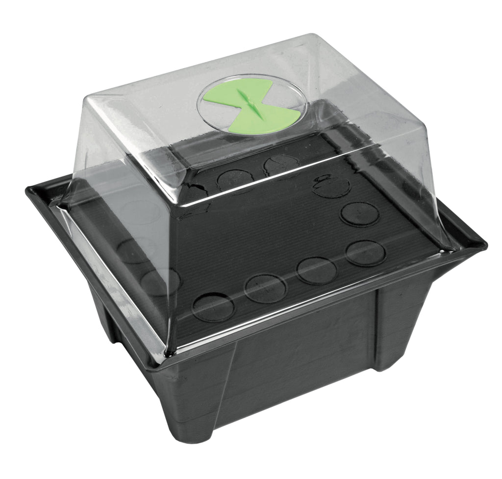 Indoor greenhouse (propagator) with aeroponic irrigation for lowerers. Controlled and strong root formation in 10 to 14 days.