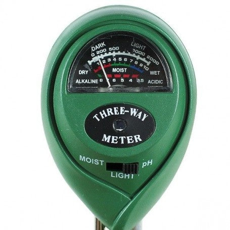 The Rapitest 3-in-1 meter is an analog instrument that allows easy and accurate measurement of soil moisture, light and pH values.