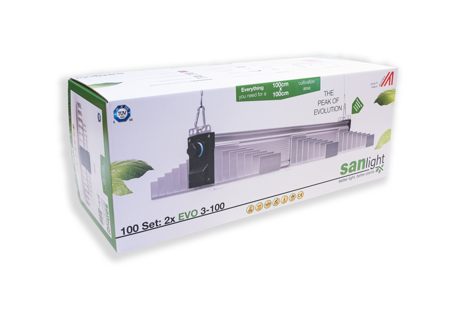 The SANlight 100 set includes everything you need for an 100cm x 100cm growing area.