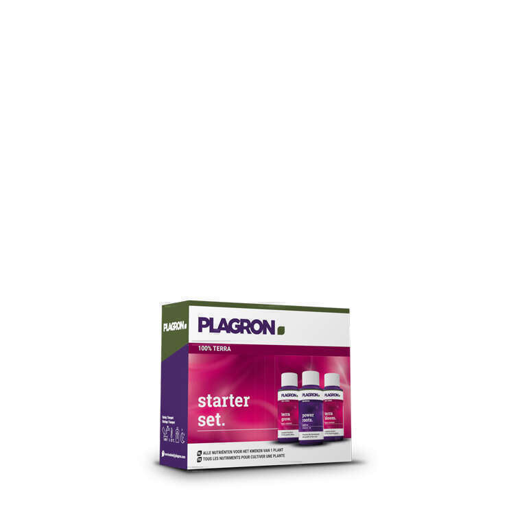 The Starter Set 100% NATURAL contains all nutrients for growing one plant. The Starter Set is the ideal box for the starting grower who want to get to know Plagron products. With the basic nutrients Alga Grow & Alga Bloom you create a good start for your plant. Power Roots ensures a good development for the roots.