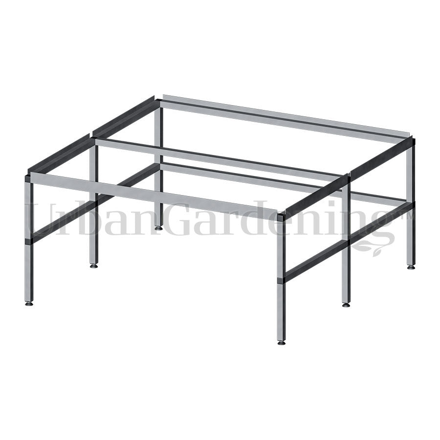The growRACK system from growTOOL: finally a perfectly thought-out, stable frame as a substructure for all common growing systems and flood table tubs.