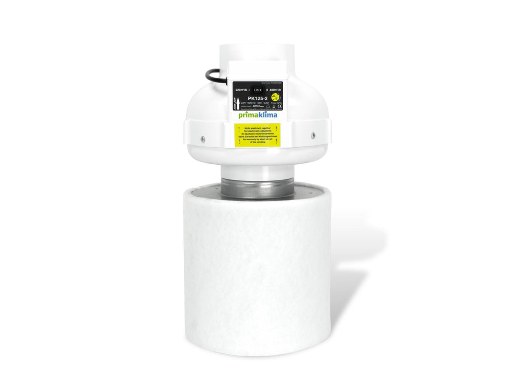 Prima Klima Kombo 420, II Speed extraction kit Airflow 420m3/h Ventilator: Prima Klima II Speed 220 or 360m3/h, Connection 125mm, Airfflow 360m3/h, Motor MES Germany, Ventilator with EU plug. Carbonfilter: Prima Klima Coco Eco 125/420. Connection 125mm/ Airflow 420m3/h,