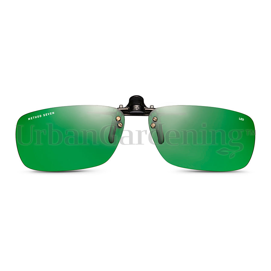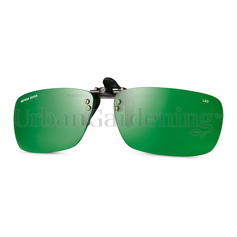Method Seven ’’Classic LED Clip-Ons’’ change the way you see your plants and grow room using your own prescription glasses! Our Classic style clip-ons have high quality lenses with spring-loaded rubber coated metal clips that gently hold to your eyewear. This Classic style fits a wide variety of smaller or less shaped lenses. For larger lenses look at ’’The Aviator’’ Clip-on. Manufactured in Italy to our exacting standards by Carl Zeiss Vision. For use under LED lighting. (See HPS Clip-on models for HPS lighting).