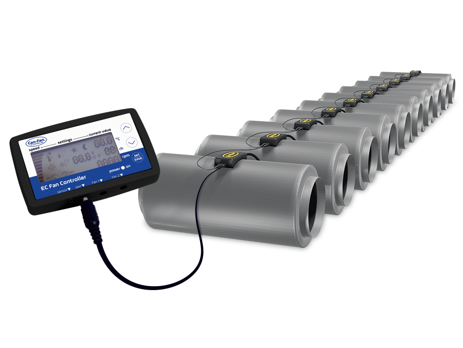 The new Can Fan EC LCD Controller is easy to use with the Up / Down buttons. The 12 VDC power supply is provided, as well as all the necessary cables (4 meters), plugs and the sensor day and night / temperature/humidity. Manual in 17 languages.Can Fan EC LCD Controller is one of the most complete EC controllers available on the market.
